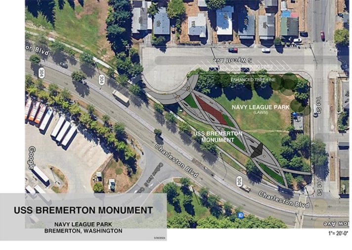 With Mayor Wheeler’s suggestion, the Navy League is now proposing to build the monument at a triangular plot of grassy area at First Street and Callow Avenue, near the Naval Base Kitsap’s Charleston gate, tentatively to be named “Navy League Park.”