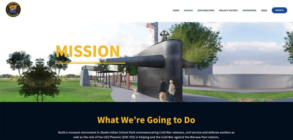 In 2008, the City of Phoenix approved a plan to erect a USS Phoenix (SSN-702) Cold War Monument in Steele Indian School Park. In 2017, the Monument concept or renderings were approved by the City of Phoenix’s Parks and Recreation Board, according to the USS Phoenix (SSN-702) Cold War Monument website.