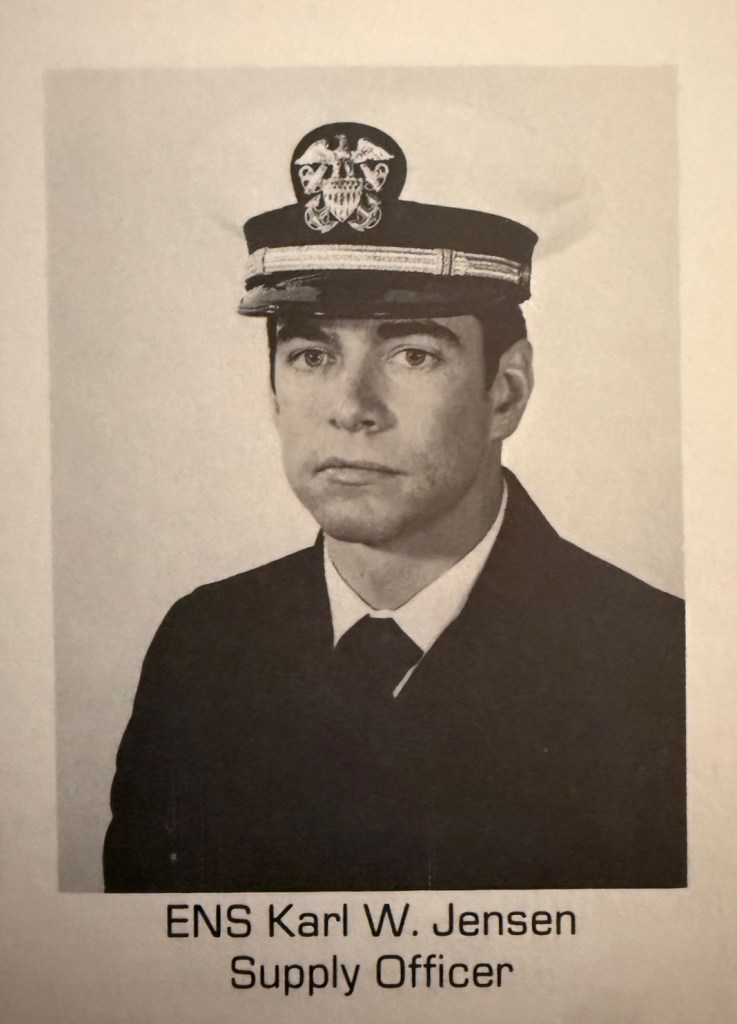 Upon completion of Officer Candidate School, Supply Corps School and the Submarine Officer Basic Course in June 1980, Karl reported to the BREMERTON SSN-698 pre-commissioning unit at Electric Boat Shipyard in Groton, CT, and served onboard through 1982. Major events during Karl’s tour onboard included offload and reload of all provisions and repair parts to repair defective welds in the forward compartment of the ship, hosting Admiral Rickover for Alpha sea trials, the ship’s first deployment to the North Arabian Sea with a port visit to Perth, Western Australia, and transit to her new home port in Pearl Harbor, Hawaii. BREMERTON also made its first port visit to Bremerton, Washington, and participated in San Francisco Fleet Week 1982 during Karl’s service onboard.